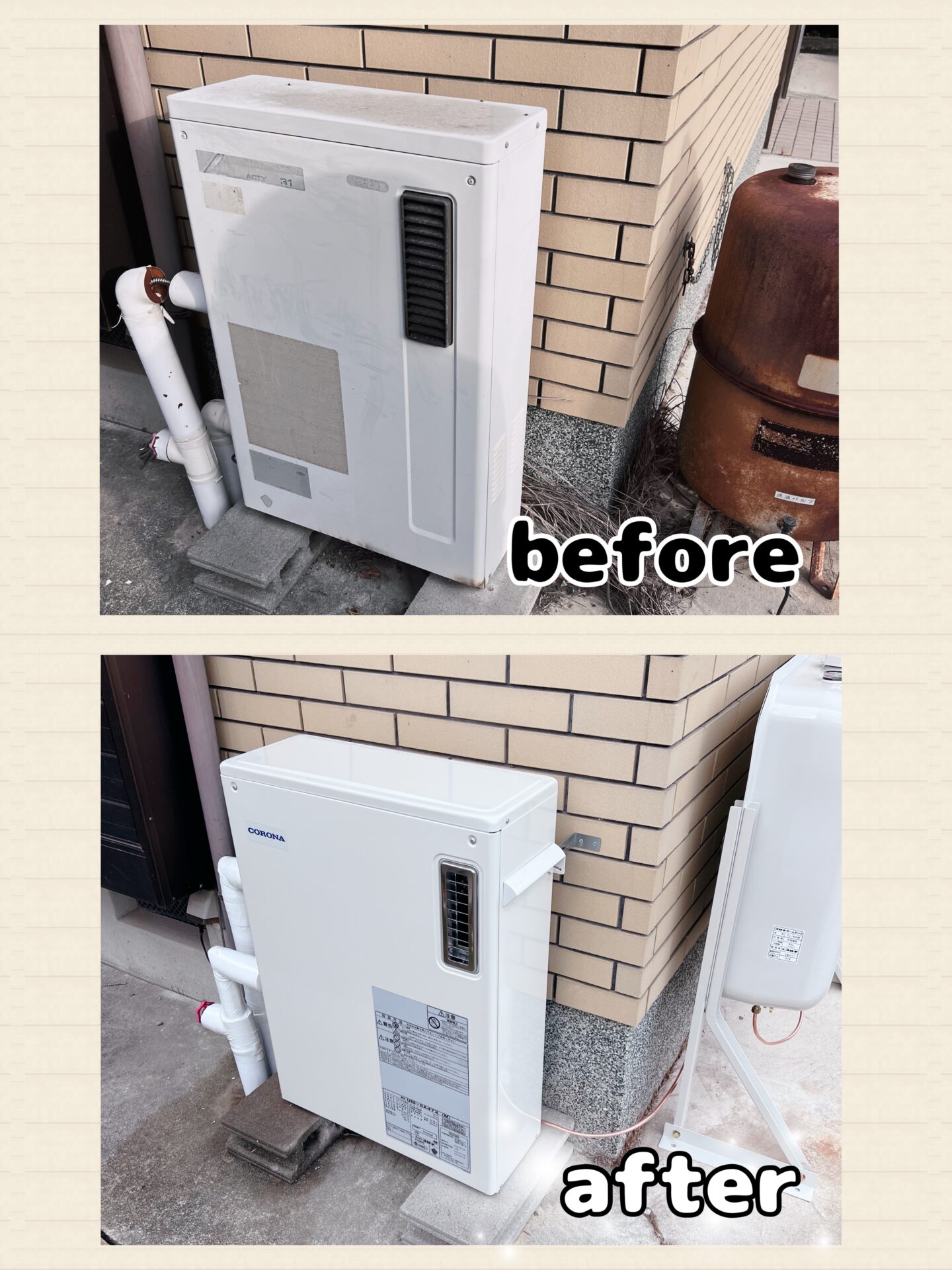 給湯器交換工事 2025-12-22 最終更新日時 : 2026-02-05 awata 先日、亀岡市某所で給湯器の交換工事をさせていただきました。 今回は動かなくなった石油給湯器と石油タンクを交換させていただきました。 石油給湯器の寿命は使用頻度や環境によって違いますが、約7年から10年です。 異音や異臭が出てきた場合は注意した方がいいですね。 今年の冬も寒くなりますので、寝る前に水を少し出したり、配管にカバーをするなり凍結防止の対策もするのも大切ですね。 お気になりましたら気軽にお問い合わせください。