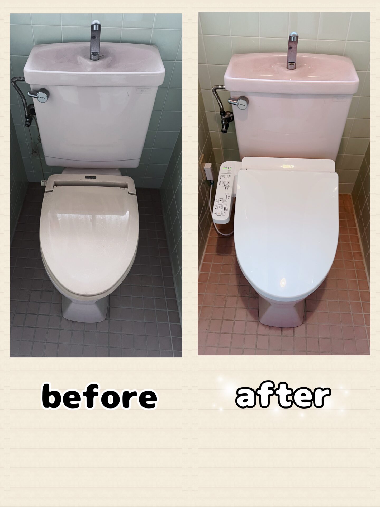 今回は暖房便座をTOTOさんのウォシュレットに交換させていただきました。