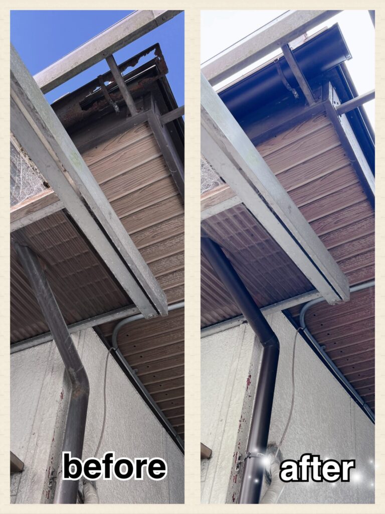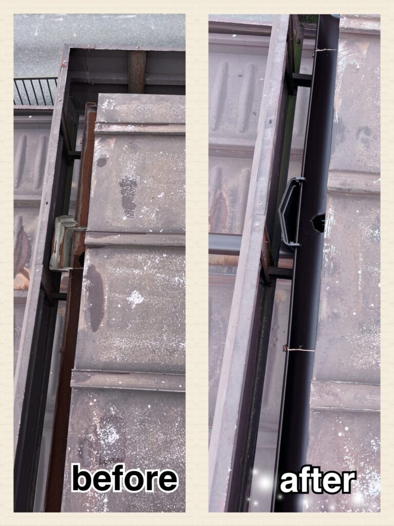 雨樋が劣化して穴が空いておりましたので新しく雨どいアイアンでやり替えさせていただきました。