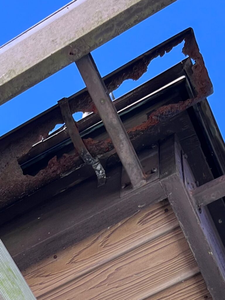 トタン製の雨樋は塩ビ加工などもされていないので、雨風、経年劣化で腐食して穴が開きボロボロになり雨樋として機能しなくなります。