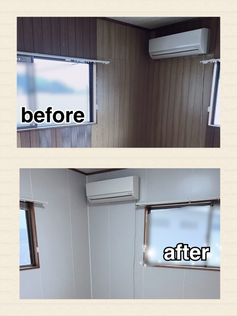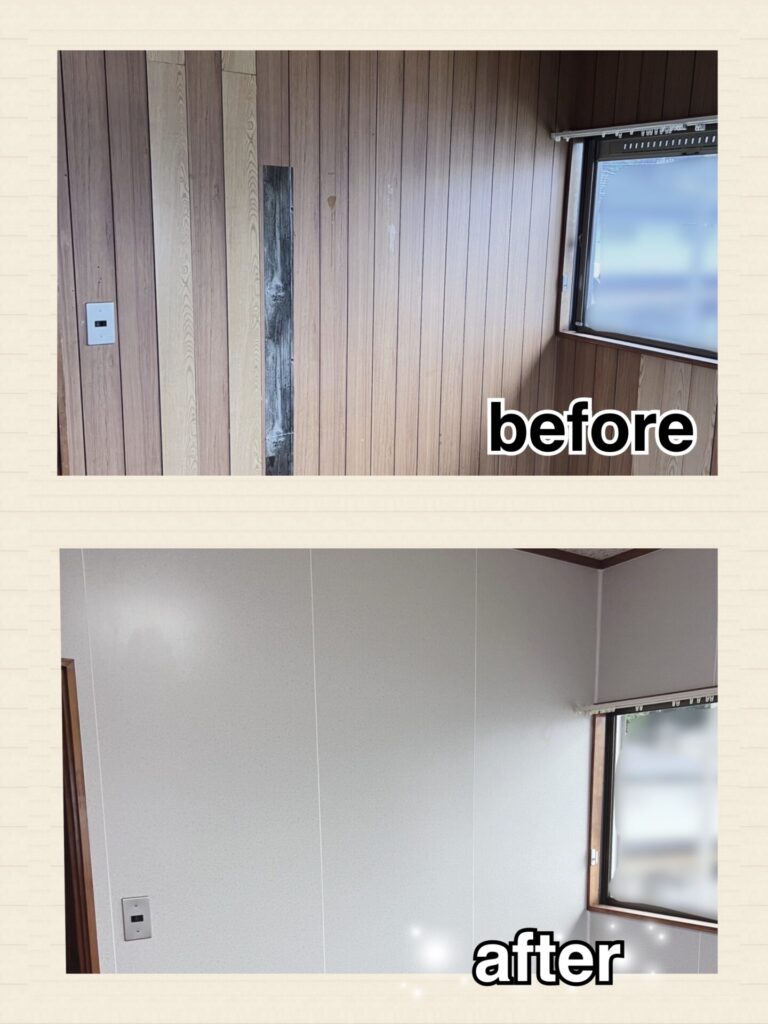 壁は化粧合板仕上げで床はフローリング張り替えをしました。